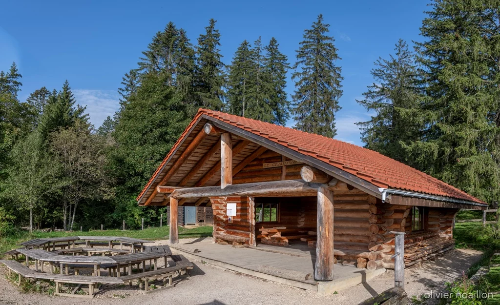Construite en 2006 avec du bois issu de la forêt du Noirmont, la cabane du CrauLoup est le résultat d’un projet local porté par la Société d’Embellissement et de nombreux bénévoles.