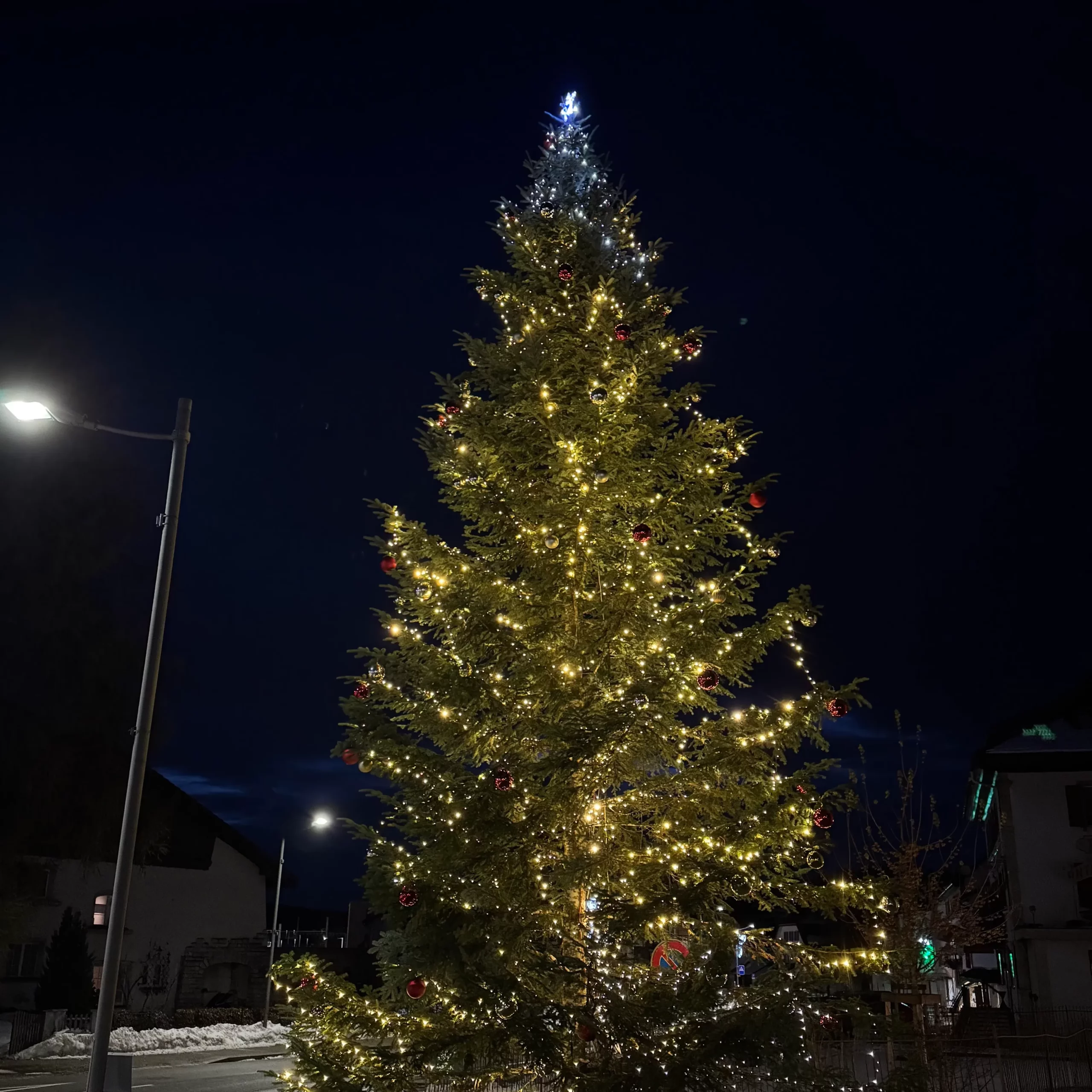 Chaque année, le sapin de Noël du village est décoré afin de marquer la période des fêtes et d’apporter une touche lumineuse au centre du village.